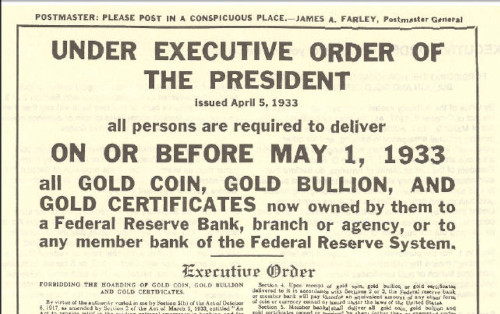 Back in 1933, Americans queued at bank counters with one purpose in mind — to swap coins and bars for paper money. Why on earth would they do that? Well, it all has to do with Executive Order 6102.